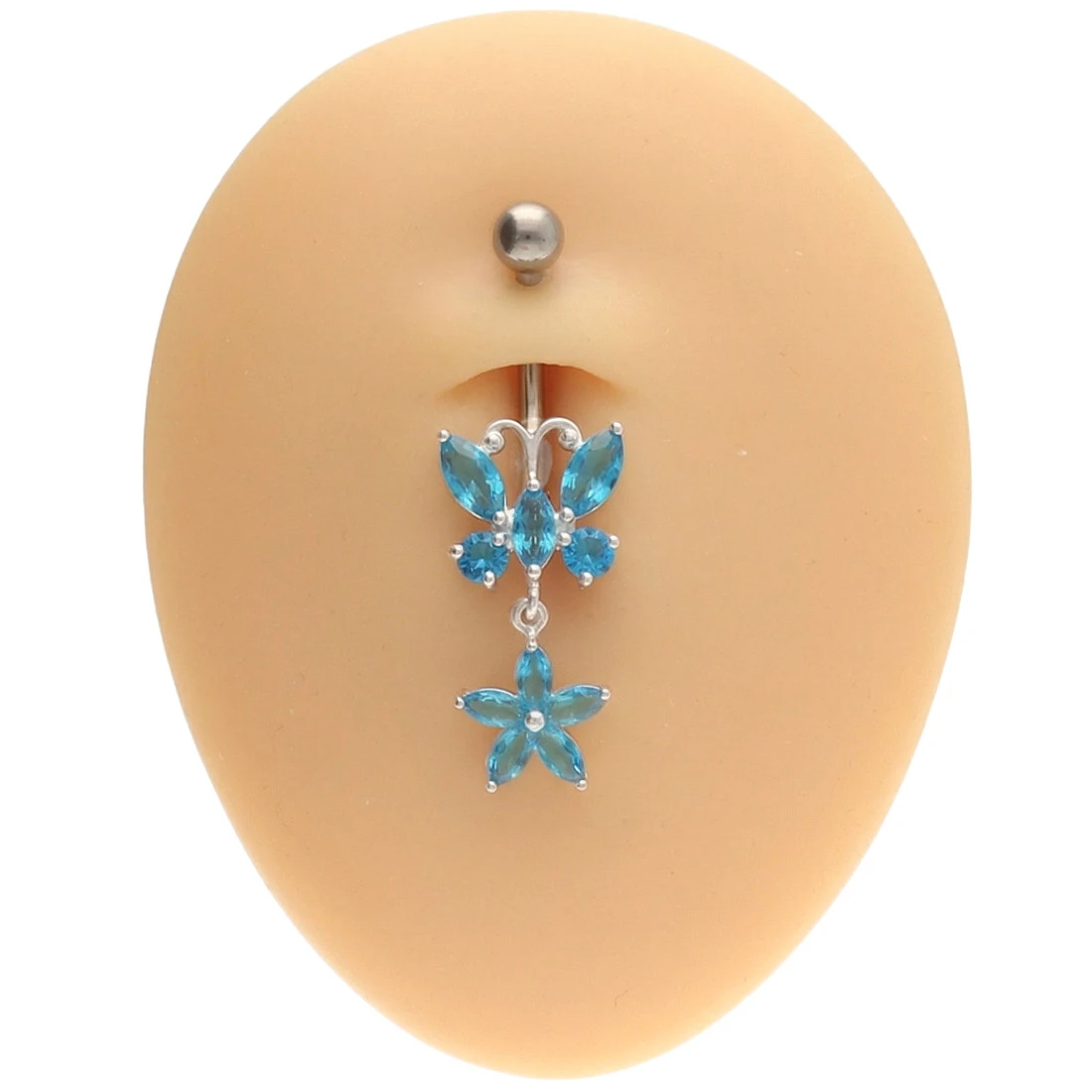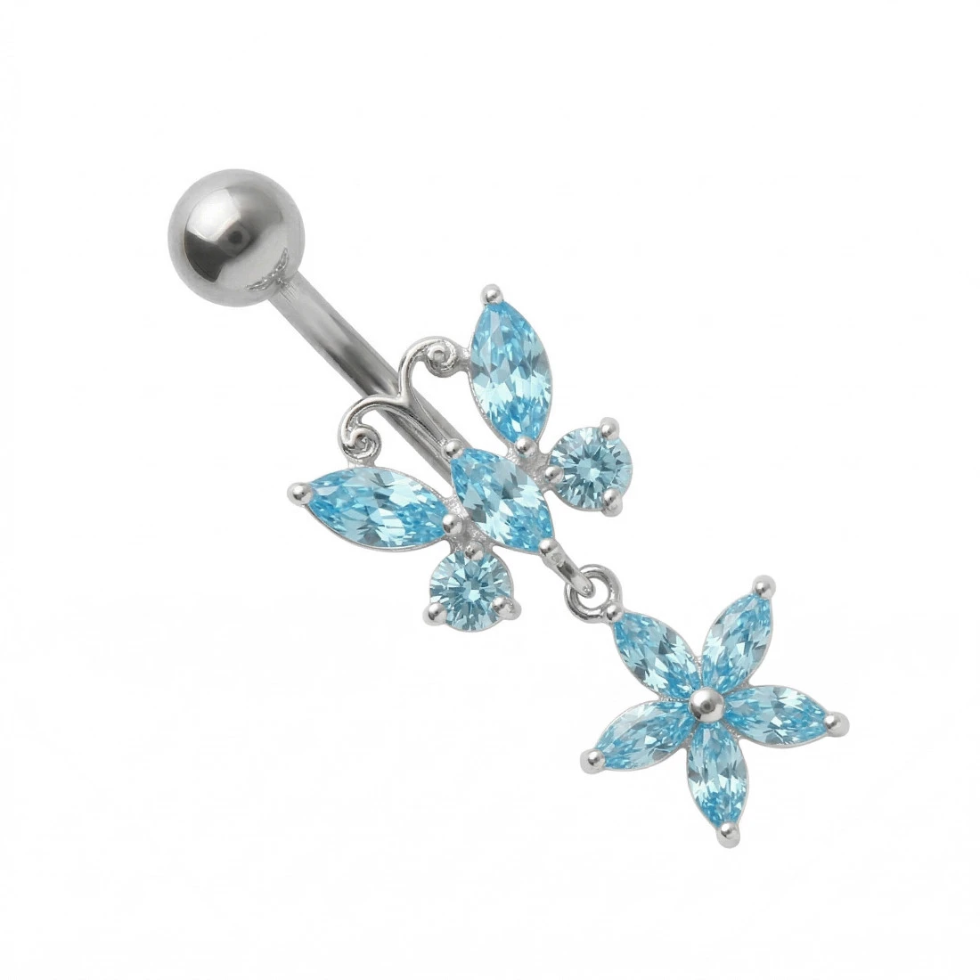 Belly banana with white zircons - silver