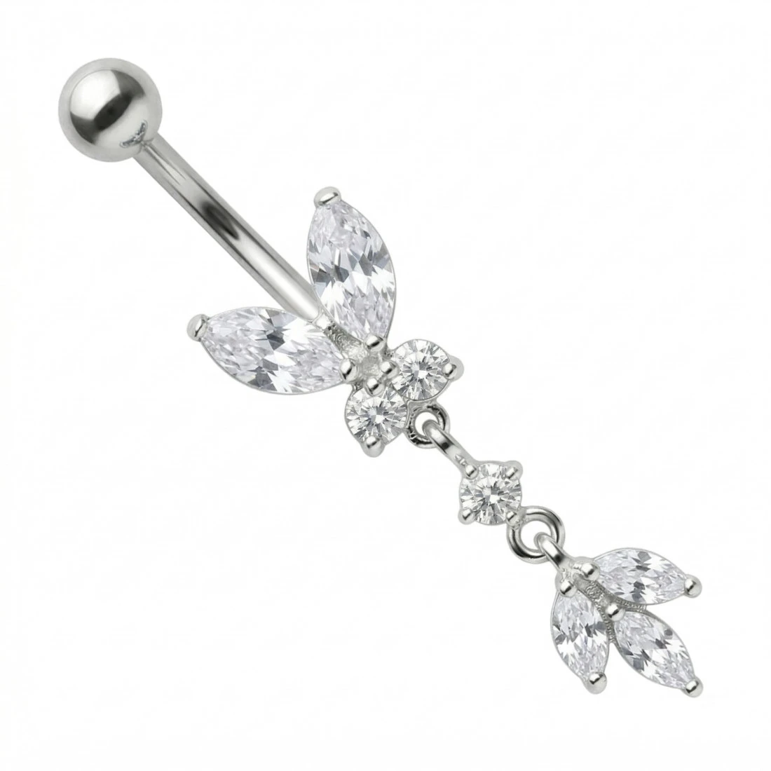 Belly banana with white zircons - silver