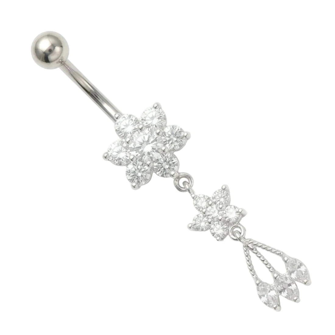 Belly banana with white zircons - silver