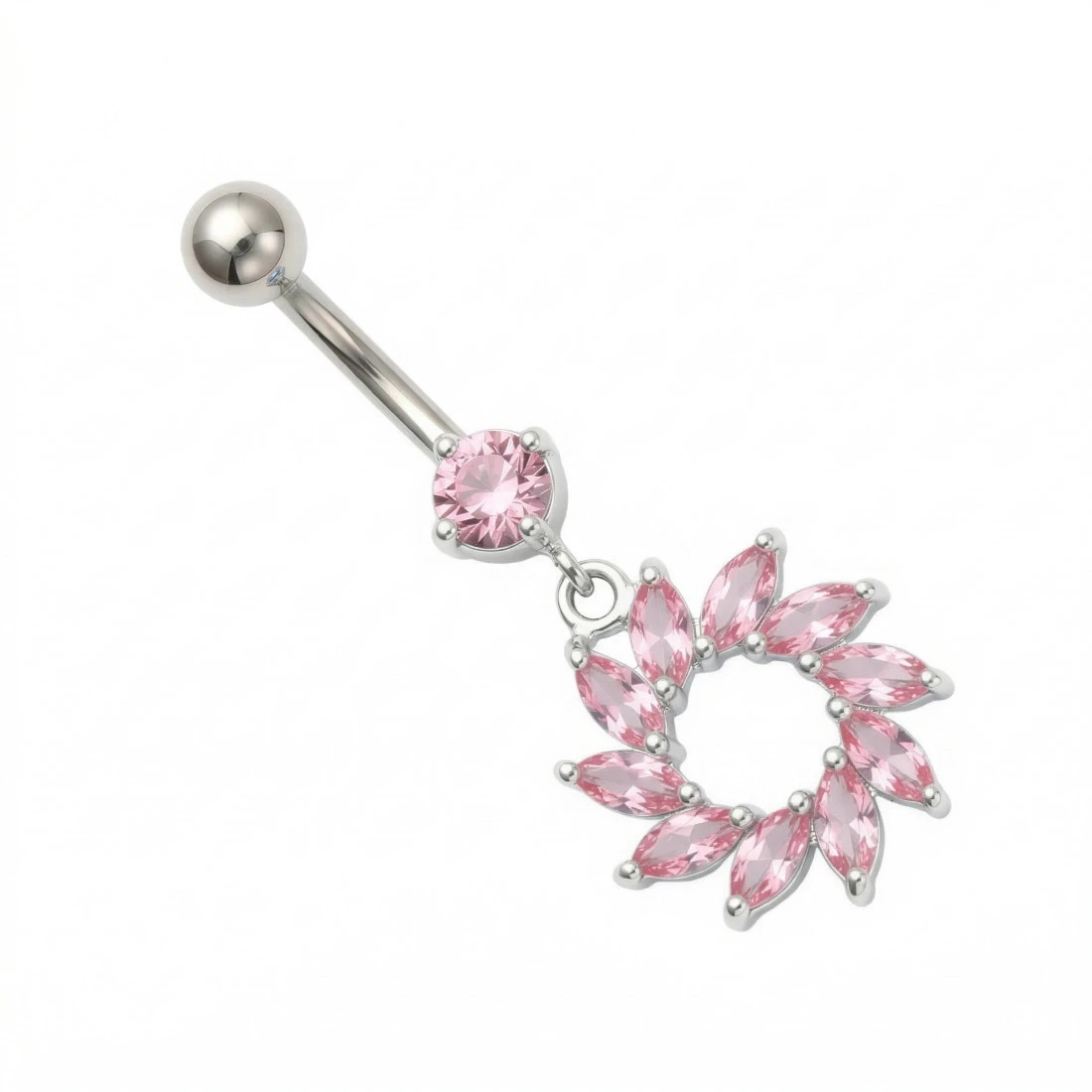 A classic curved belly button piercing, naval banana made of 316L surgical steel in natural silver colour.