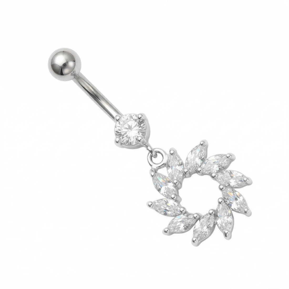 Belly banana with white zircons - silver