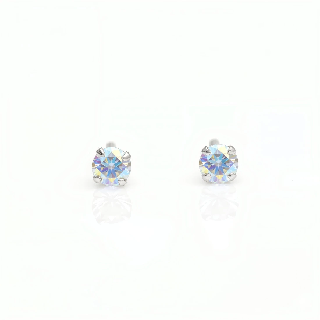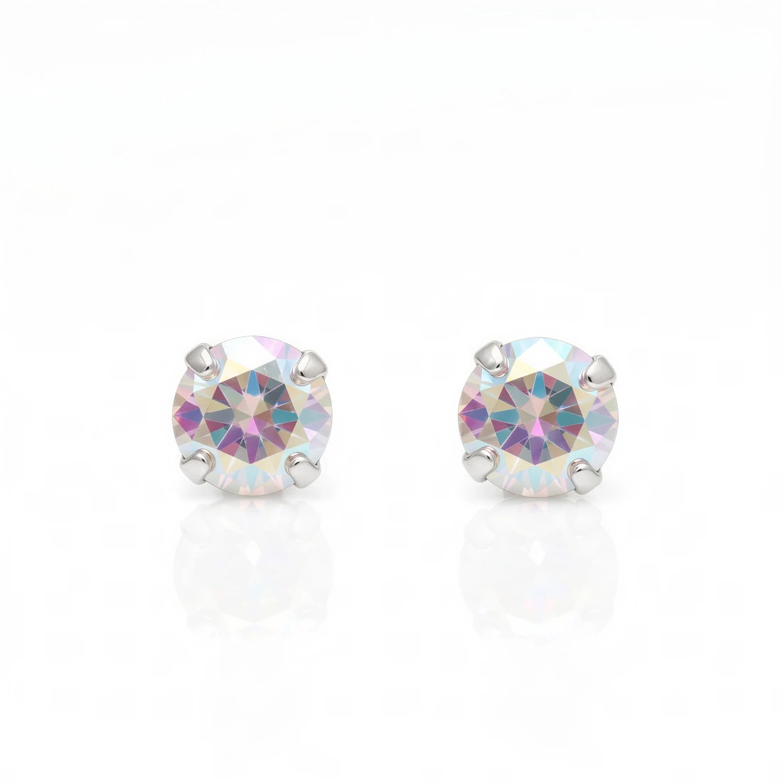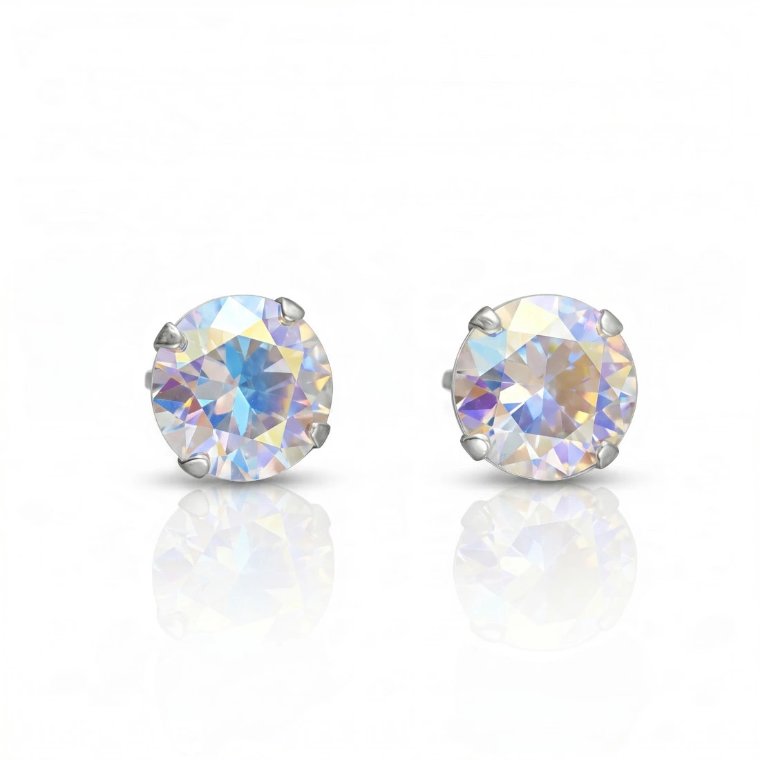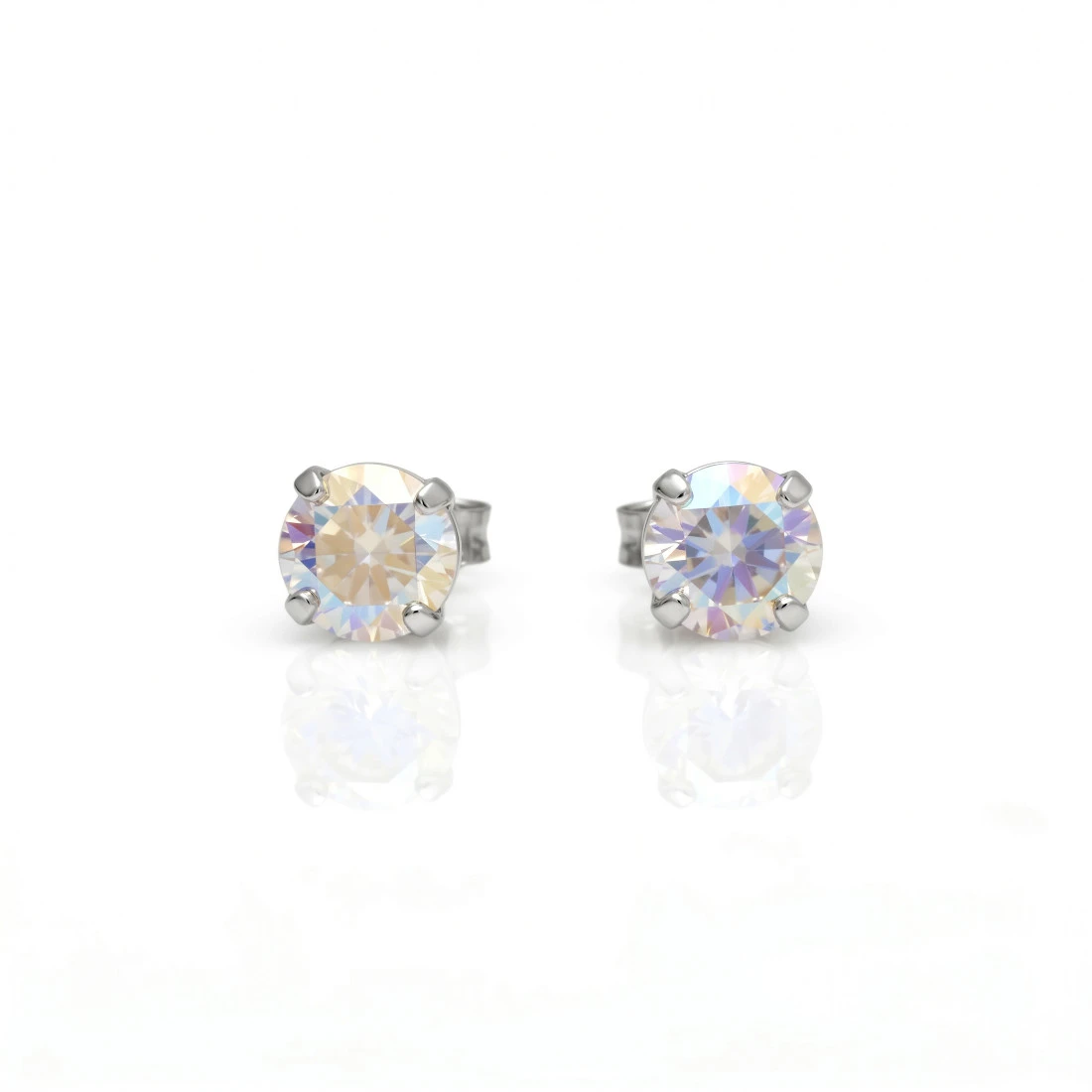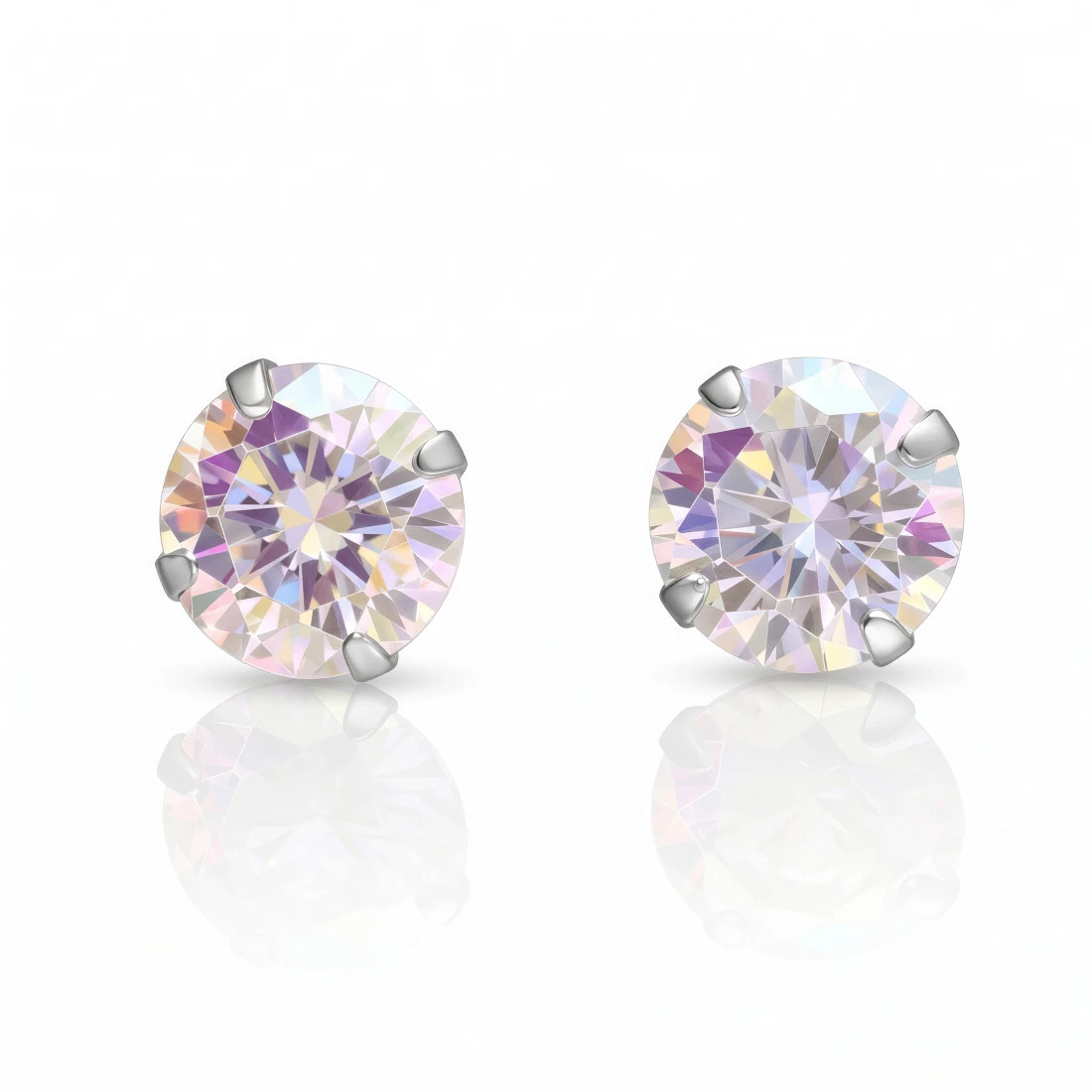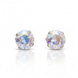 Classic stud earrings, 8mm long with a diamond cut white zircon eyelet. Made of rhodium-plated 925 silver.