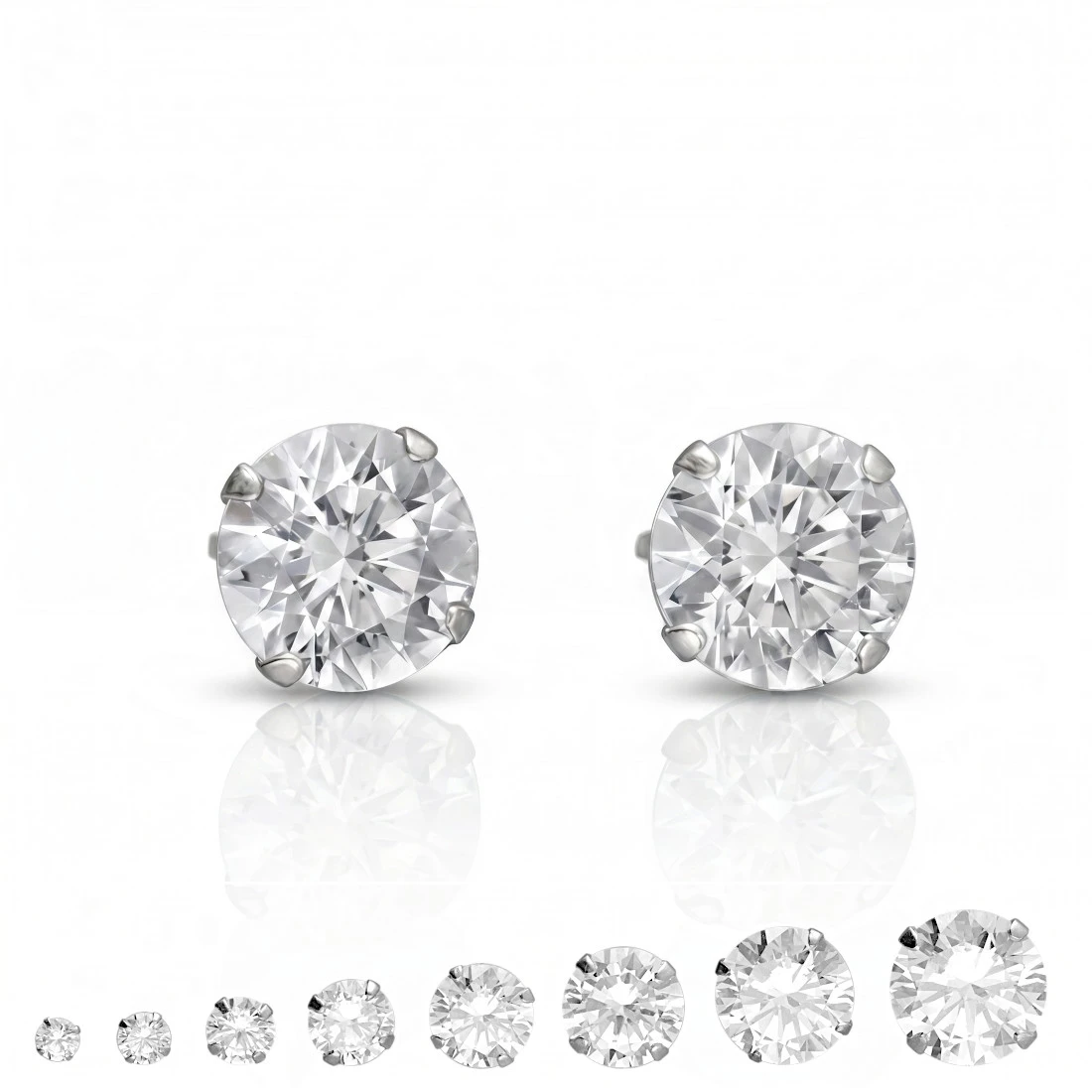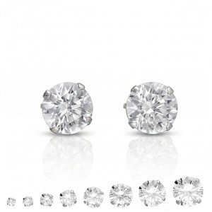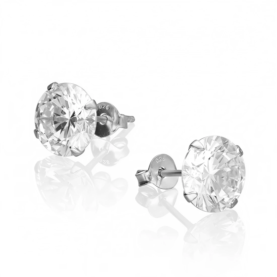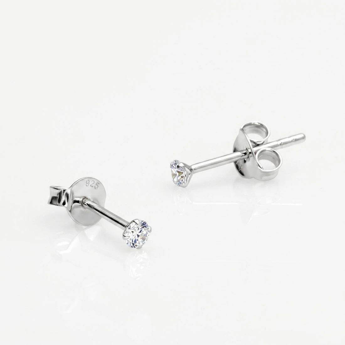 Classic stud earrings, 8mm long with a diamond cut white zircon eyelet. Made of rhodium-plated 925 silver.