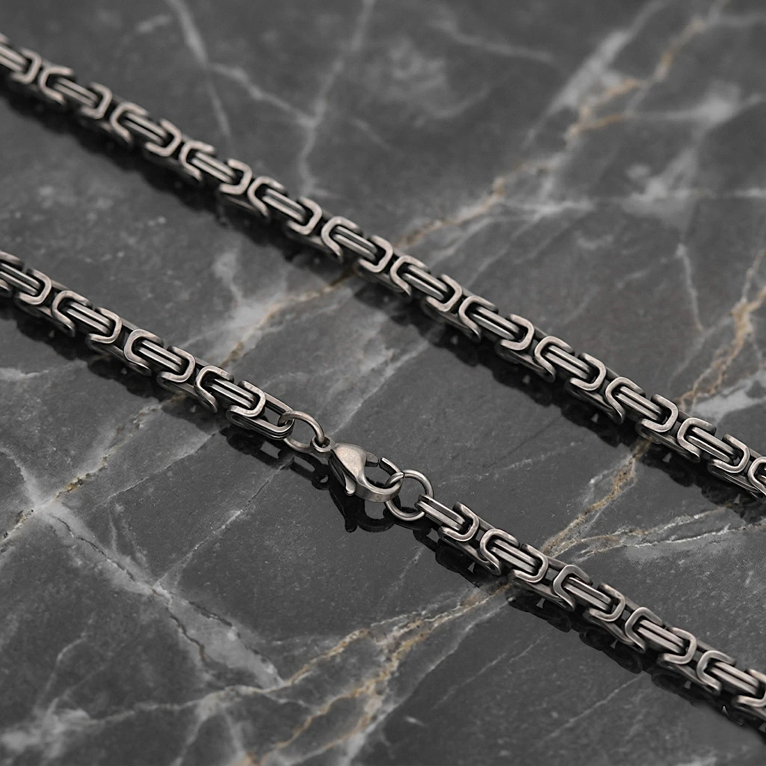 On a delicate chain with a classic braid and a length of 45 + 3 cm (extension chain).