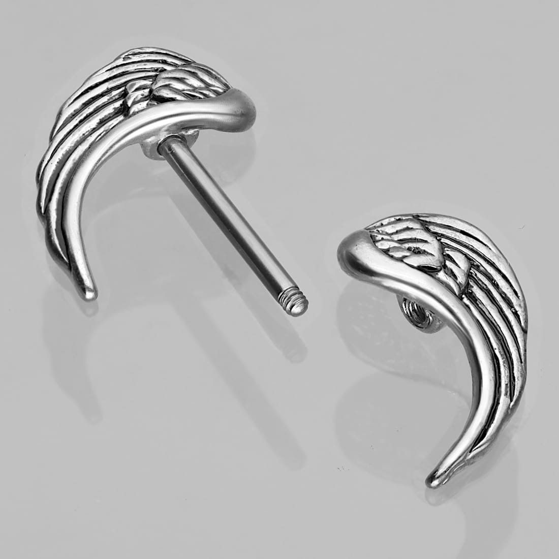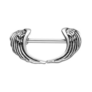 Decorative barbell made of surgical 316L steel with prominent, wing-shaped screw caps.