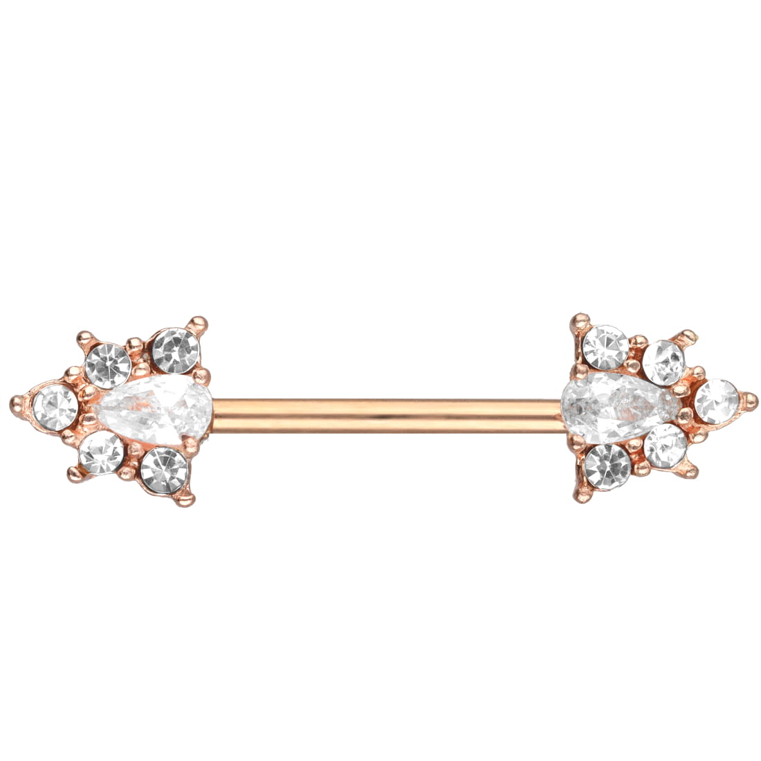 Nipple barbell with flowers embedded with zircons - rose gold