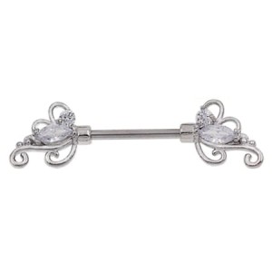 Decorative nipple barbell piercing in 316L steel with white zircons.