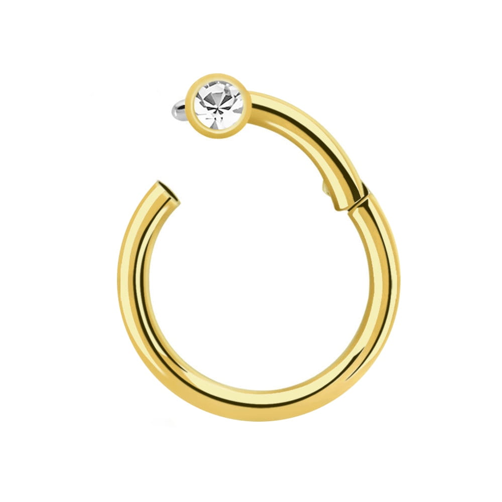 Titanium septum clicker ring with white zircon stones - silver