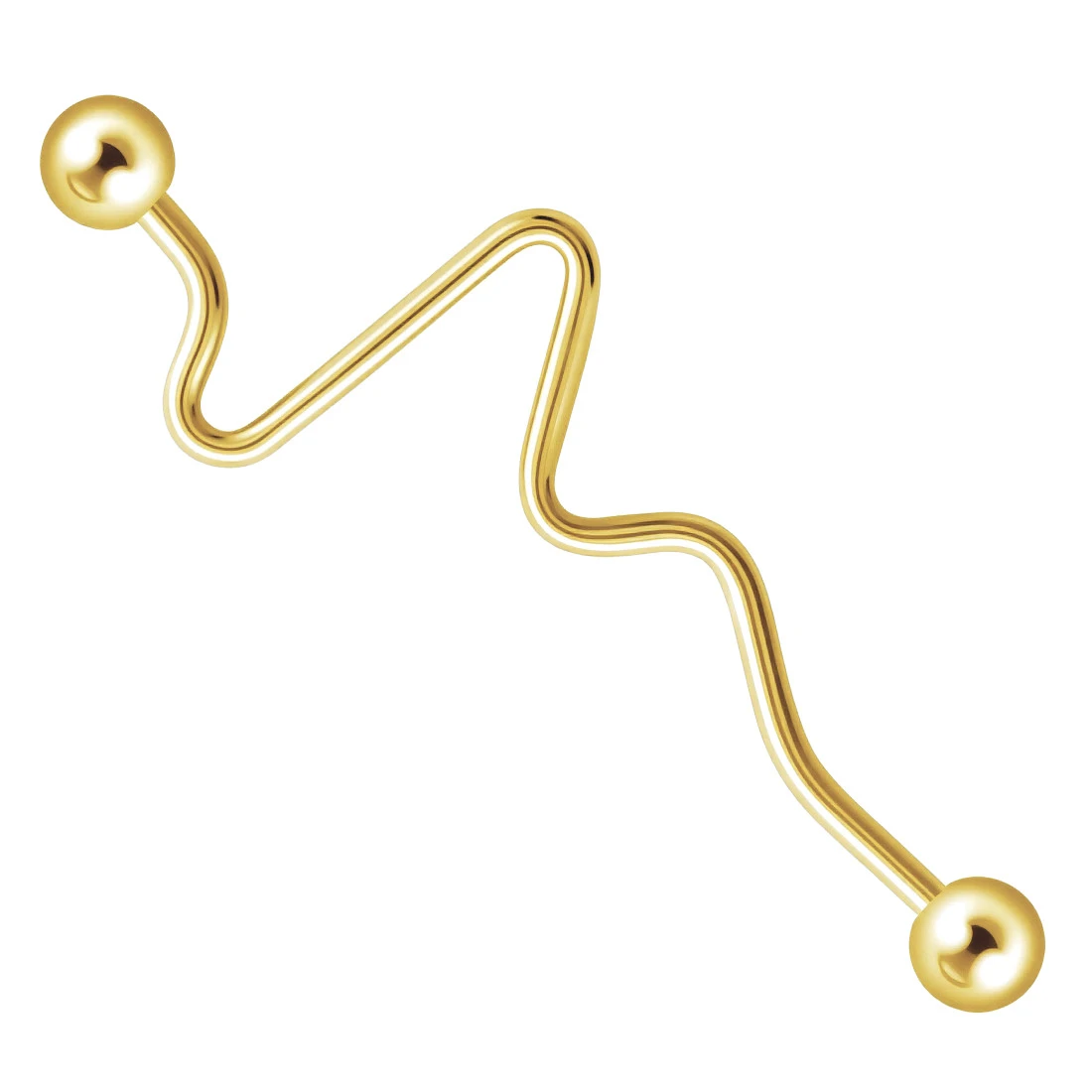 Złota sztanga przeznaczona do przekłucia typu industrial, wykonana z wysokiej jakości stali chirurgicznej 316L. Materiał ten charakteryzuje się wyjątkową trwałością oraz odpornością na czynniki zewnętrzne, co sprawia, że biżuteria nie rdzewieje i nie traci swojego pierwotnego blasku nawet przy codziennym użytkowaniu. Gładka, polerowana powierzchnia stali jest bezpieczna dla skóry i ułatwia utrzymanie odpowiedniej higieny miejsca przekłucia. Kolorowa powłoka uzyskana metodą PVD gwarantuje bardzo dużą twardość i odporność na ścieranie.