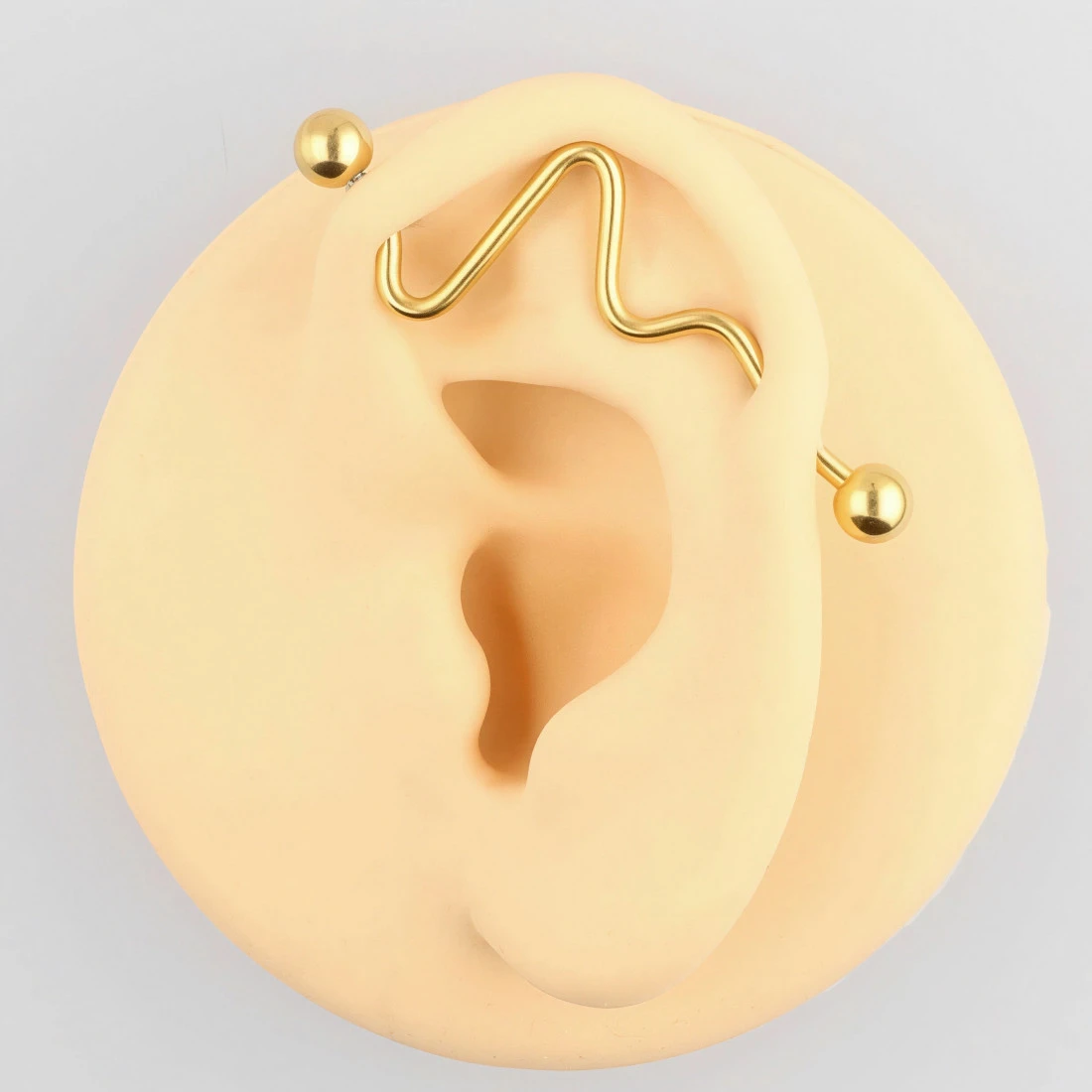 Nietypowa forma kolczyka stanowi alternatywę dla klasycznych, prostych modeli, nadając przekłuciu bardziej wyrazisty charakter. Dzięki połączeniu eleganckiego złotego koloru z nowoczesnym kształtem, biżuteria ta będzie odpowiednim wyborem dla osób, które chcą wyróżnić swój industrial i szukają dodatków przyciągających wzrok. Produkt dobrze komponuje się zarówno z minimalistycznymi, jak i bardziej dekoracyjnymi zestawami kolczyków w uchu.