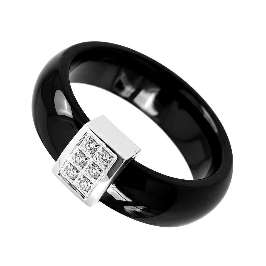 Ten nowoczesny pierścionek to kwintesencja współczesnej elegancji, w której surowy minimalizm spotyka się z luksusowym wykończeniem. Został wykonany z wysokiej jakości czarnej ceramiki jubilerskiej, która zachwyca głębokim, lustrzanym połyskiem i wyjątkową odpornością na zarysowania, dzięki czemu zachowuje swój nieskazitelny wygląd przez lata.