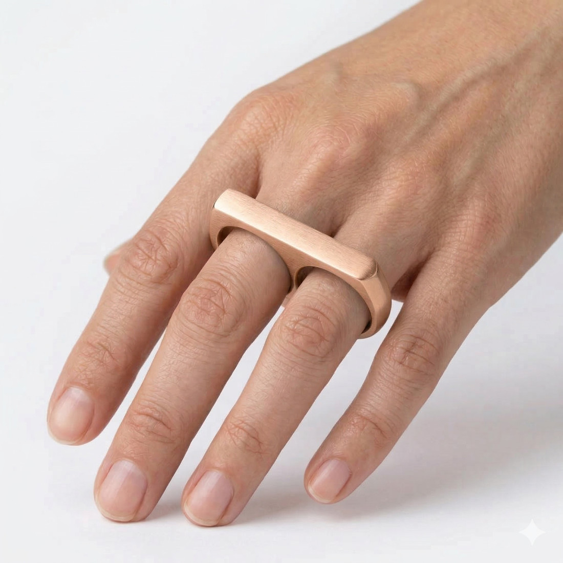 Minimalistyczna obrączka na dwa palce - różowe złoto matowa