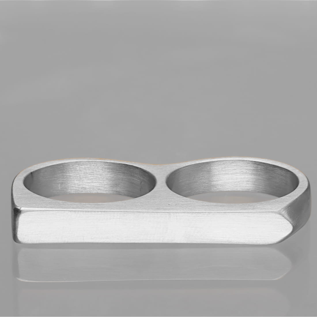 Sygnet o nowoczesnej, geometrycznej formie został zaprojektowany do noszenia na dwóch palcach jednocześnie. Wykonano go z wysokiej jakości stali szlachetnej, która charakteryzuje się dużą twardością oraz odpornością na zarysowania i odkształcenia.