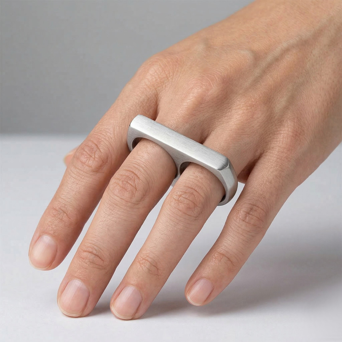 Minimalistyczna obrączka na dwa palce - srebrna matowa