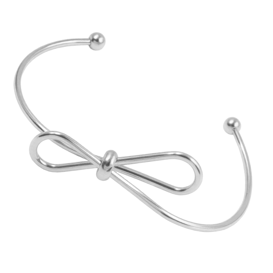 Bransoletka posiada otwartą konstrukcję, co pozwala na łatwe dopasowanie rozmiaru do obwodu nadgarstka, a jej końce zostały zabezpieczone estetycznymi kuleczkami. Gładka, lśniąca powierzchnia w kolorze srebra sprawia, że jest to uniwersalny dodatek pasujący do wielu okazji – od biurowego dress code'u po wieczorne wyjścia.