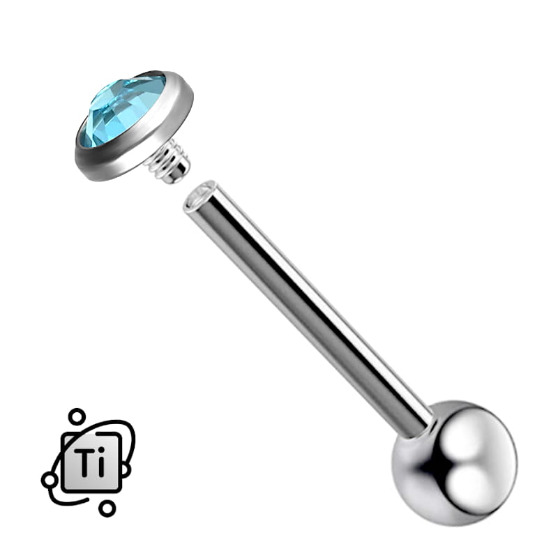 Kolczyk do języka tytanowy INTERNAL z BŁĘKITNĄ CYRKONIĄ - srebrny