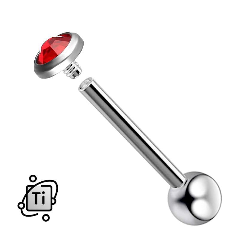 Kolczyk do języka tytanowy INTERNAL z CZERWONĄ CYRKONIĄ - srebrny