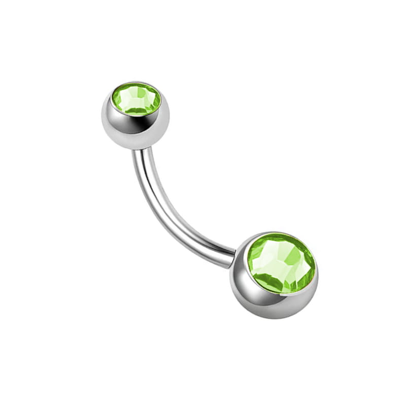 Kolczyk do pępka ze Stali 316L z jasnozielonymi cyrkoniami - srebrny