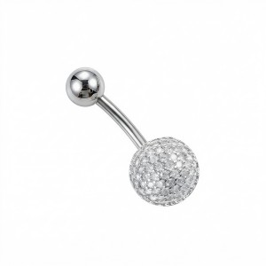 Kolczyk do pępka ze Stali 316L z półkulą wysadzaną cyrkoniami - srebrny