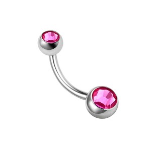 Kolczyk do pępka ze Stali 316L z różowymi cyrkoniami - srebrny