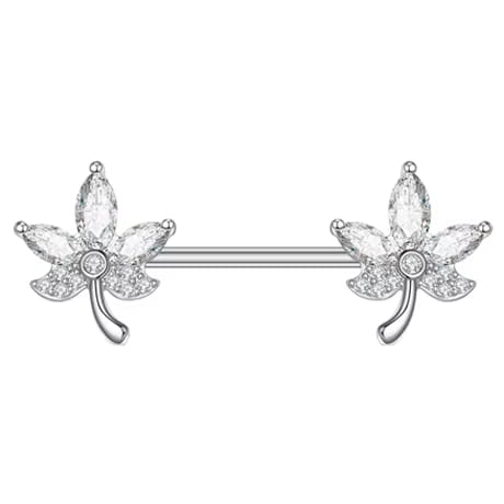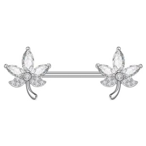 Kolczyk do sutka ze Stali 316L listki z cyrkoniami Crystal - srebrny