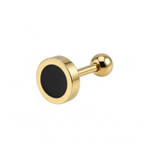 Kolczyk do ucha z emaliowanej stali CZARNE KÓŁKO - złoty