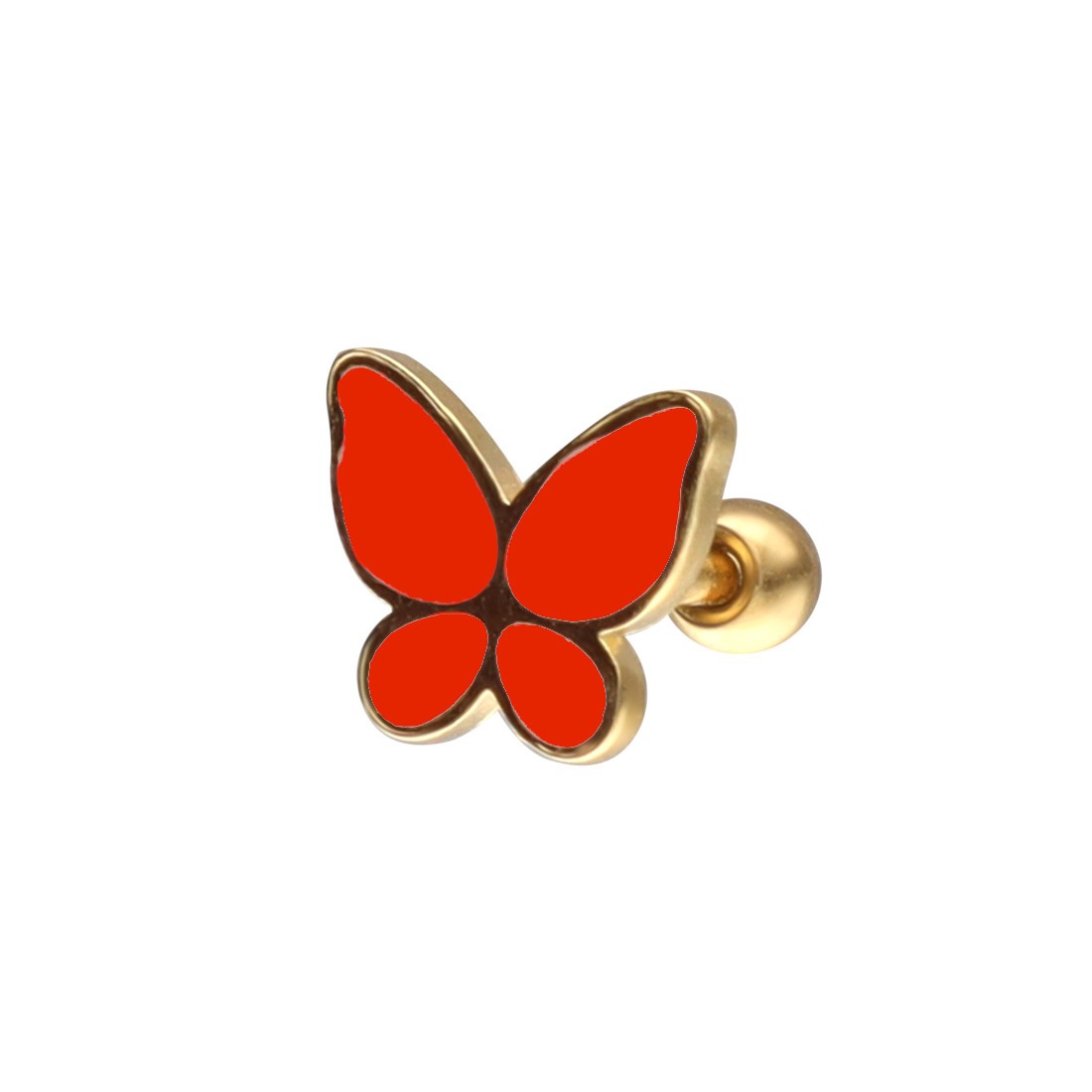 Kolczyk do ucha z emaliowanej stali CZERWONY MOTYL - złoty