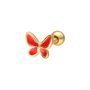 Kolczyk do ucha z emaliowanej stali CZERWONY MOTYLEK - złoty