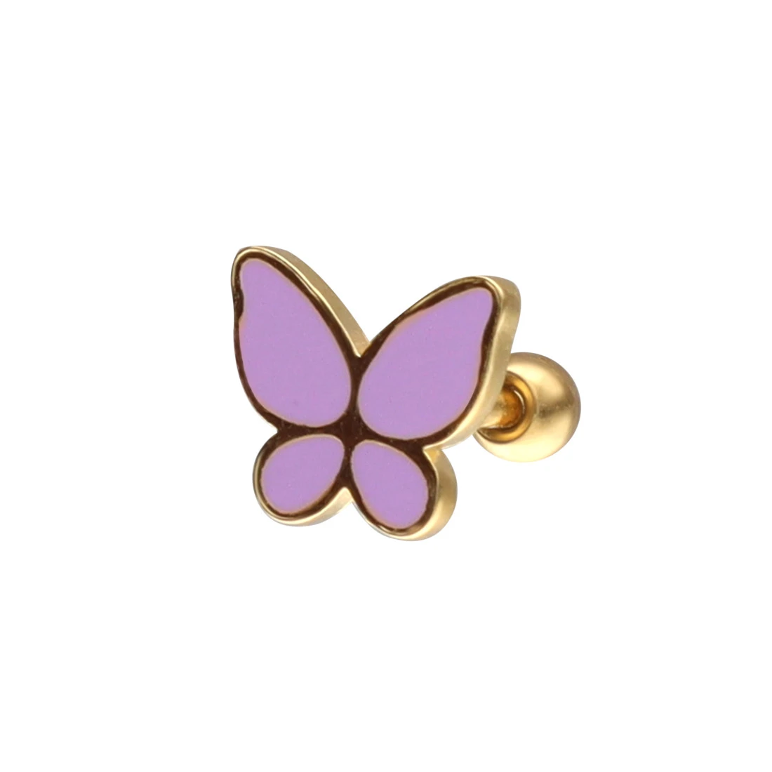 Kolczyk do ucha z emaliowanej stali FIOLETOWY MOTYL - złoty
