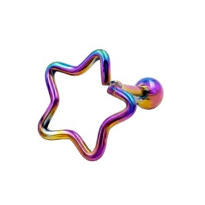 Kolczyk charakteryzuje się budową typu barbell z gwintem zewnętrznym umieszczonym na prostym pręcie, na który nakręcana jest gładka, stalowa kulka zabezpieczająca. Ozdobnym elementem modelu jest kontur gwiazdki o gładkiej, polerowanej powierzchni.