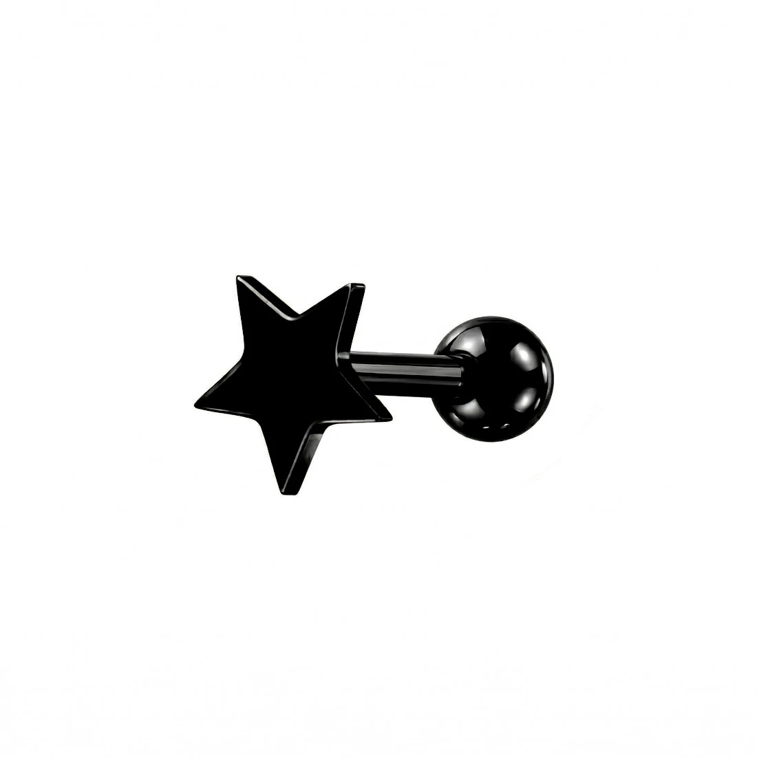 Kolczyk charakteryzuje się budową typu barbell z zewnętrznym gwintem umieszczonym na prostym pręcie, na który nakręcana jest gładka, stalowa kulka zabezpieczająca. Element ozdobny ma formę pięcioramiennej gwiazdy.