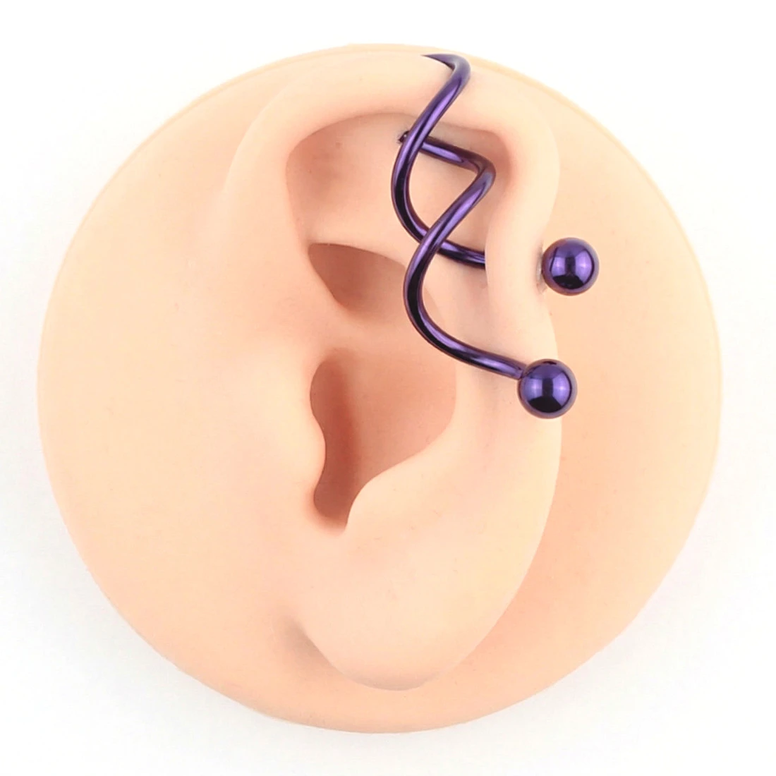 Kolczyk stalowy do ucha industrial twister - fioletowy