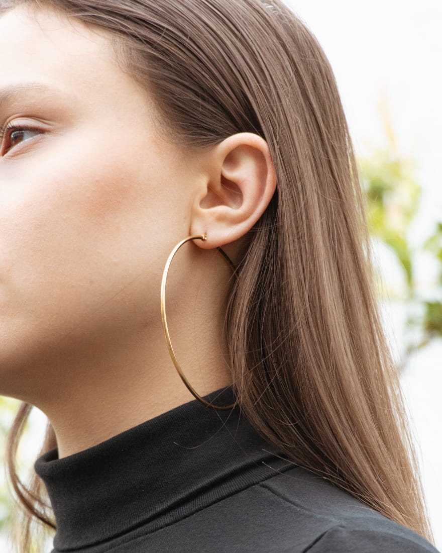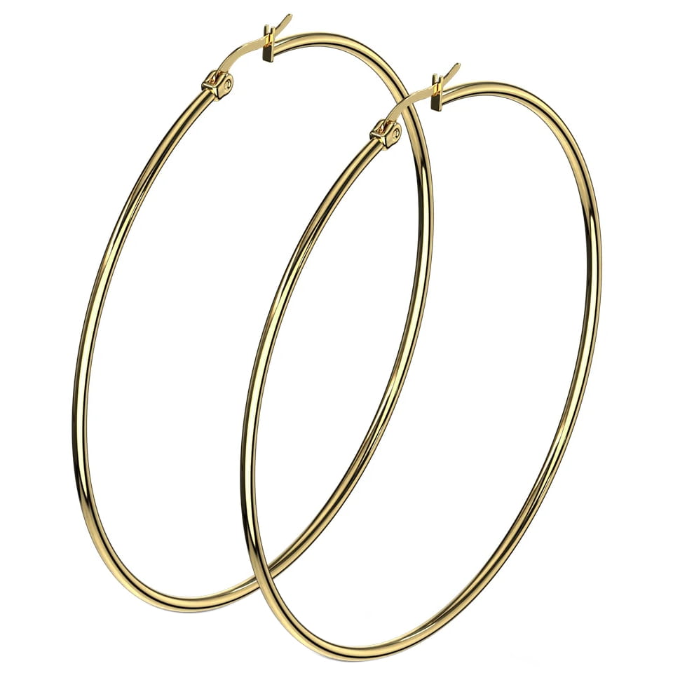 Para klasycznych dużych kolczyków kółek na sztyftach zatrzaskowych. Wykonana ze stali szlachetnej w złotym kolorze uzyskanym metodą PVD.