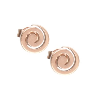 Para małych delikatnych kolczyków na sztyfcie z topem w formie spirali. Wykonana ze stali szlachetnej w kolorze różowego złota. Kolor uzyskany metodą PVD.