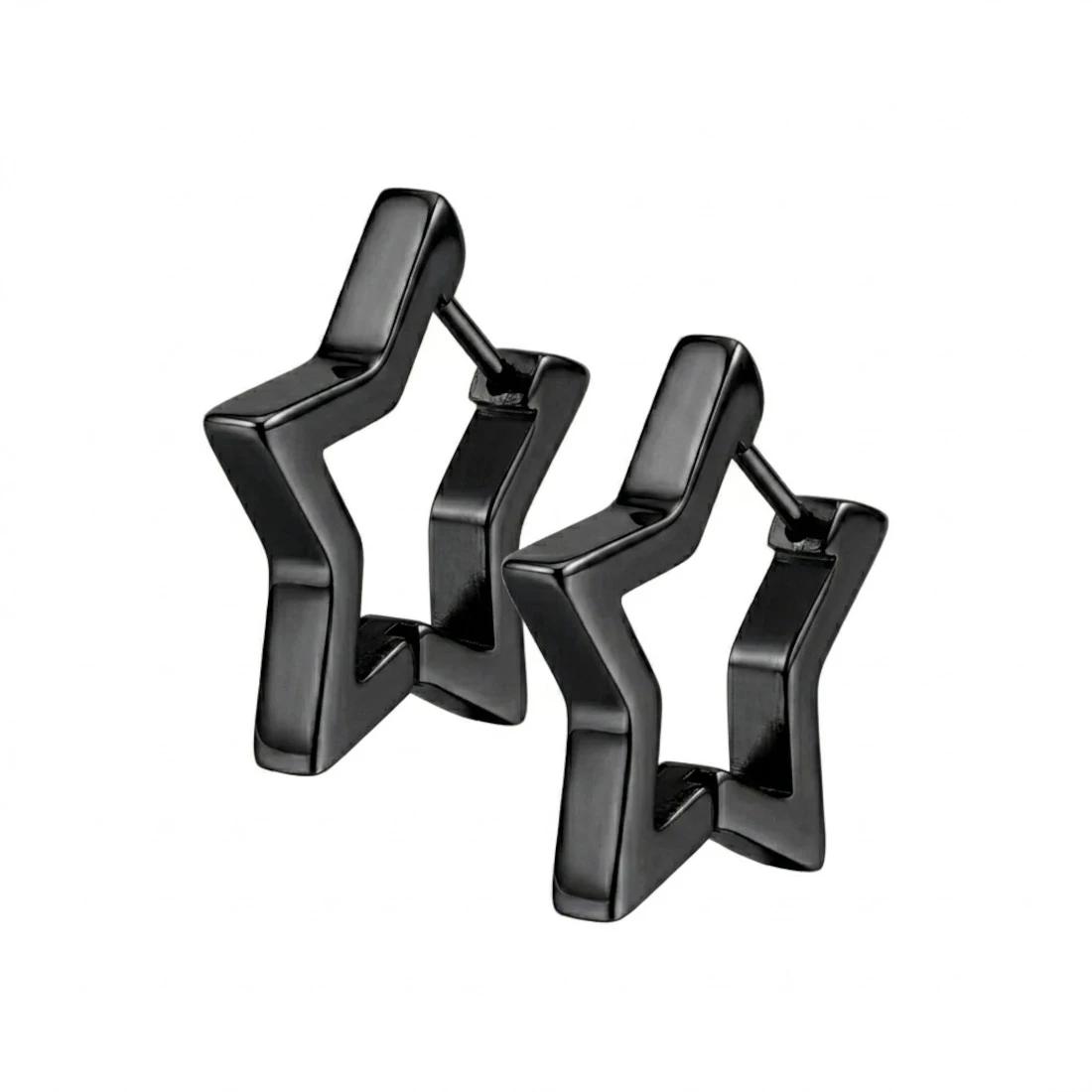 Kolczyki czarne huggie ze stali GWIAZDKI - profil kwadratowy