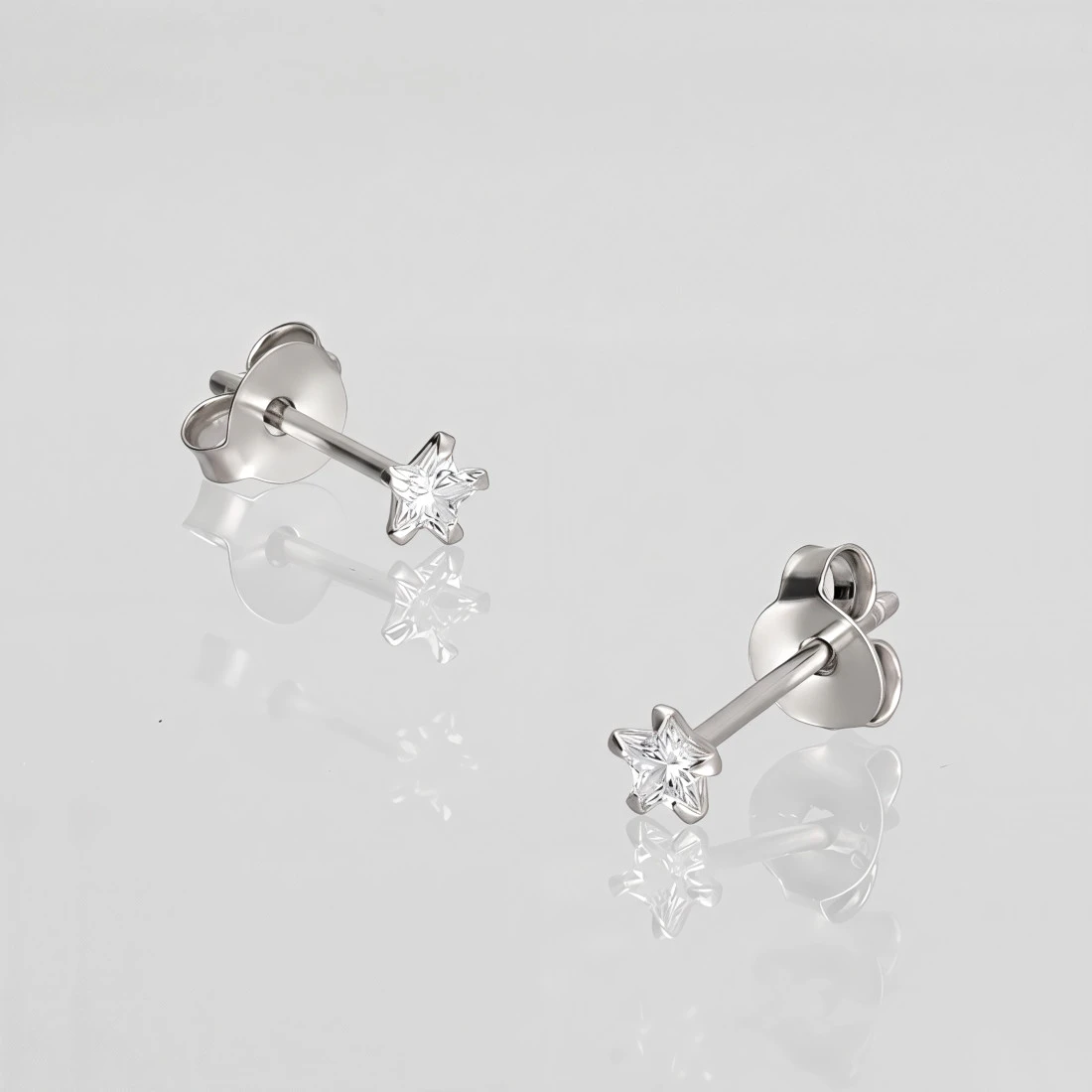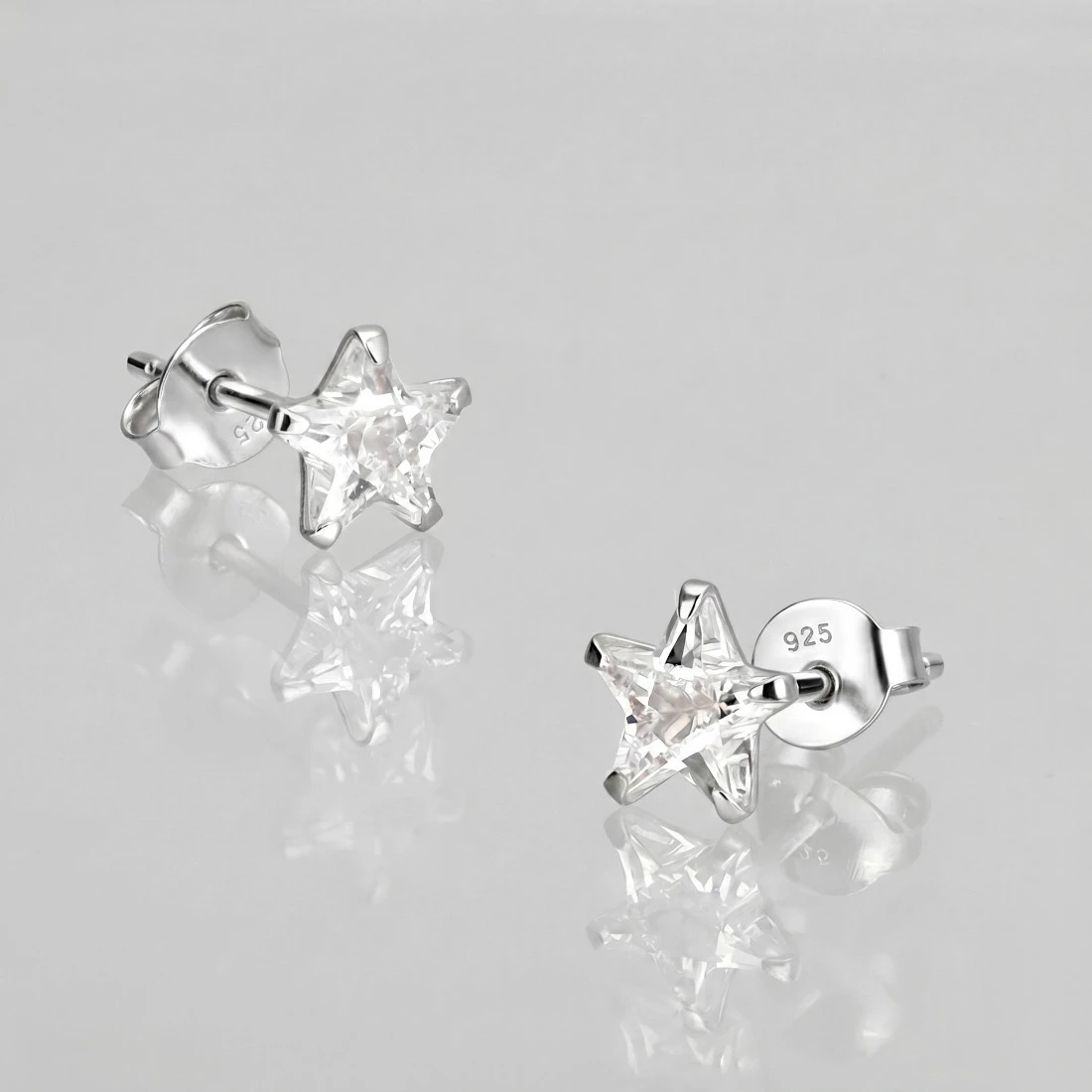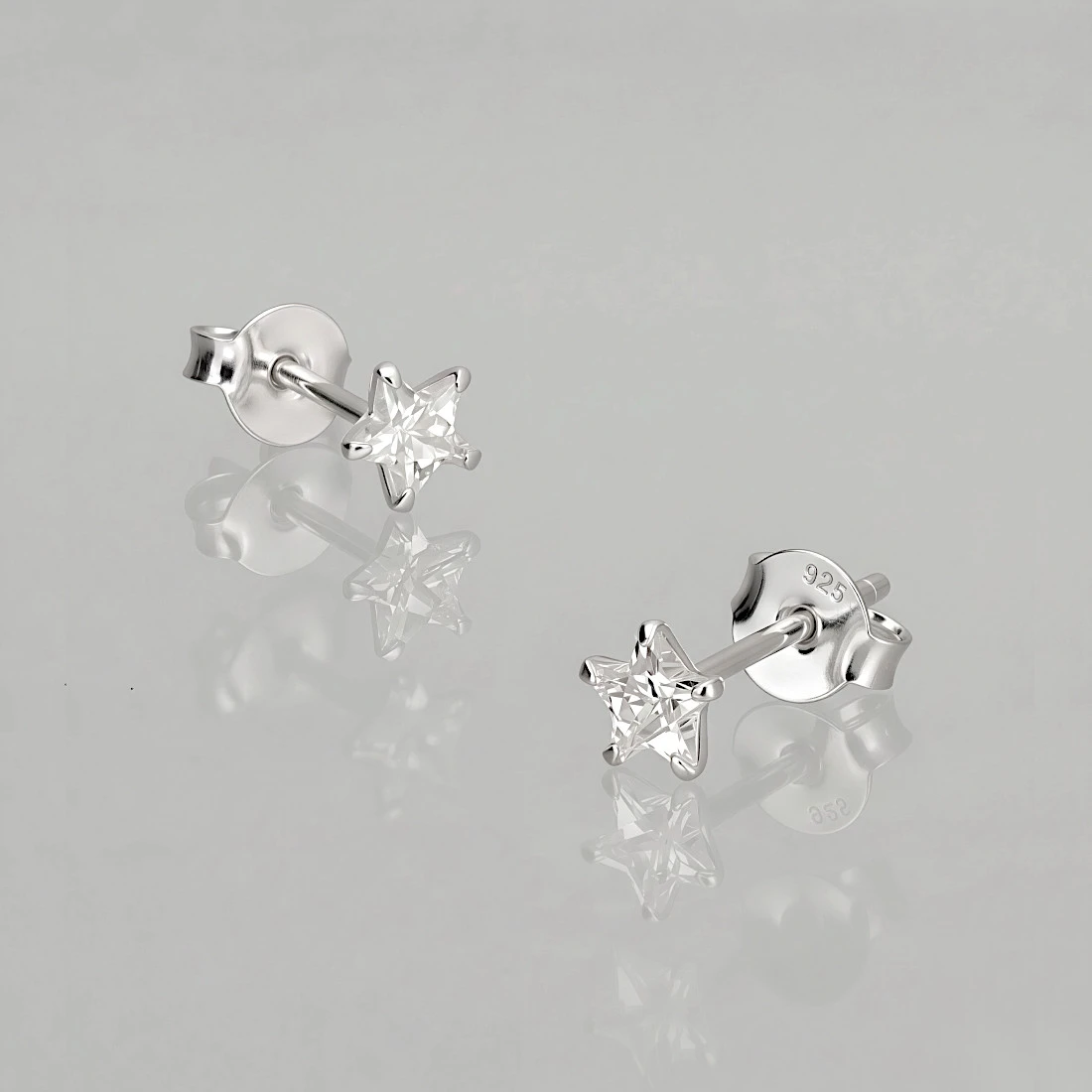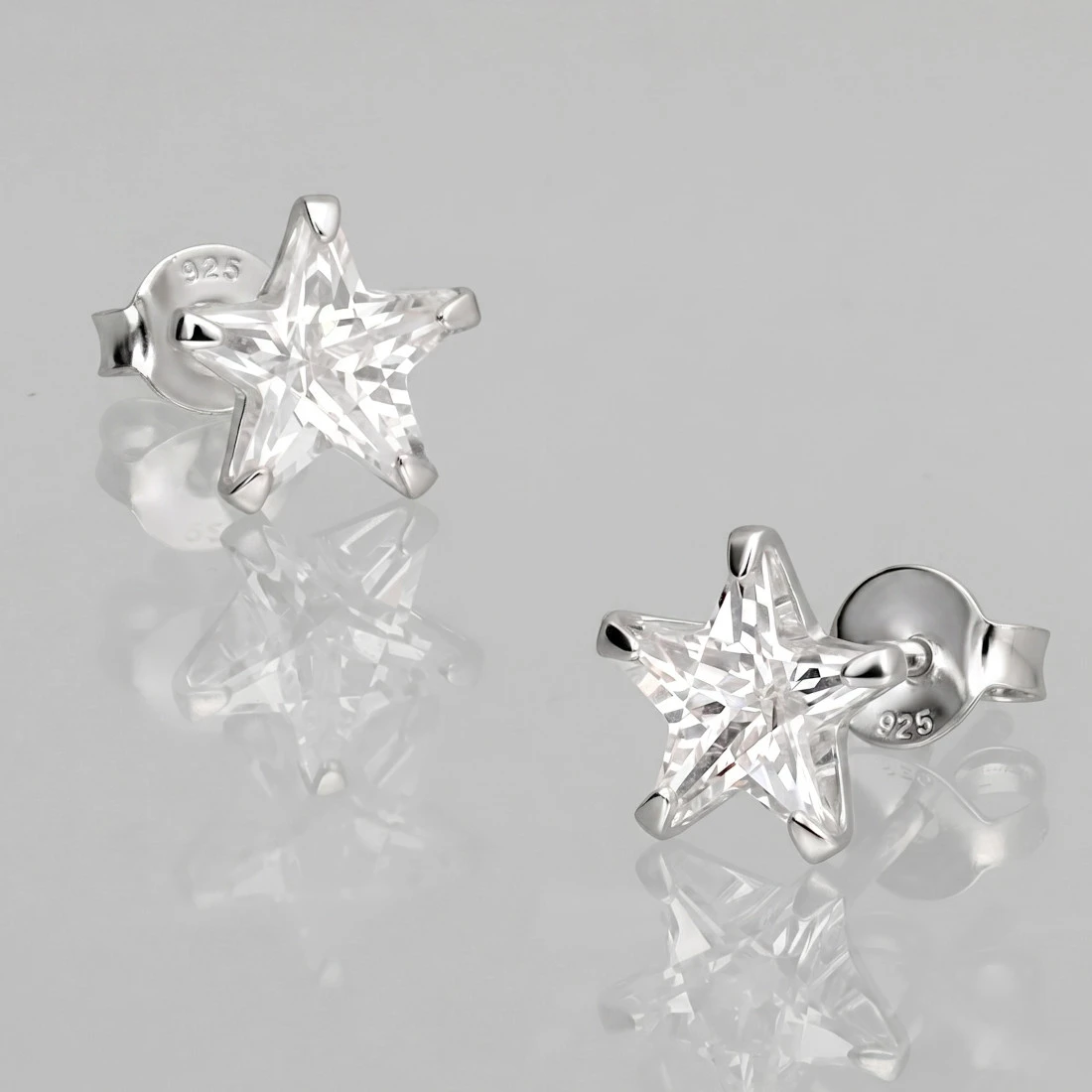 Centralnym elementem kolczyków są precyzyjnie szlifowane w kształt pięcioramiennej gwiazdki przeźroczyste cyrkonie. Kamień jest osadzony w solidnych, srebrnych łapkach.