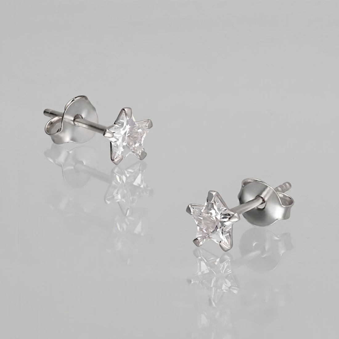 Para uroczych dziewczęcych kolczyków na sztyfcie z cyrkoniami w kształcie gwiazdek. Kolczyki wykonane są ze srebra próby 925, co gwarantuje trwałość, piękny połysk oraz bezpieczeństwo nawet dla wrażliwej skóry. Dodatkowo zostały pokryte warstwą rodu – szlachetnego metalu z grupy platynowców. Rodowa powłoka uodparnia srebrną biżuterię na żółknięcie, utwardza ją zapobiegając zarysowaniom oraz nadaje piękny połysk.