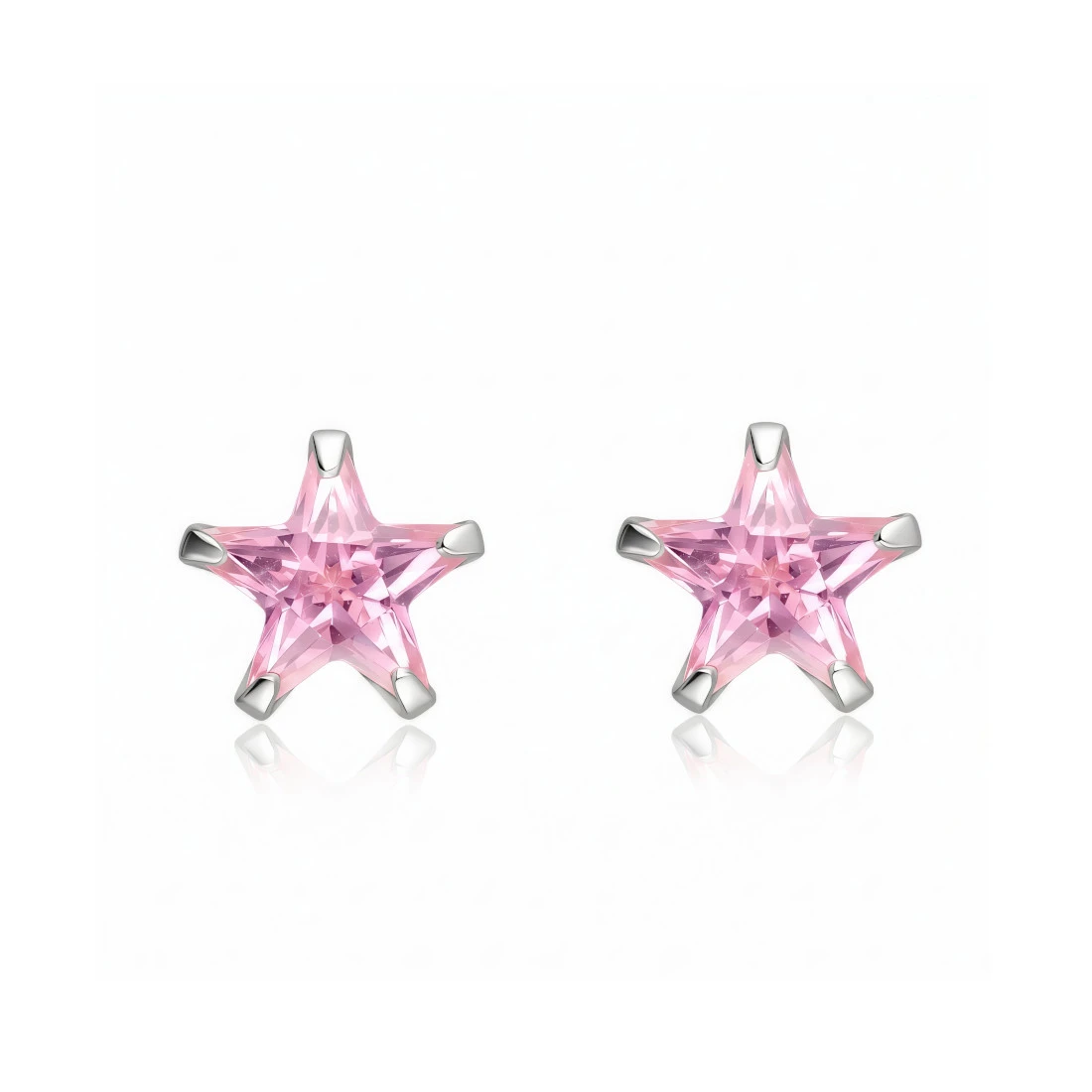 Centralnym elementem kolczyków są precyzyjnie szlifowane w kształt pięcioramiennej gwiazdki cyrkonie w różowym kolorze. Kamień jest osadzony w solidnych, srebrnych łapkach.