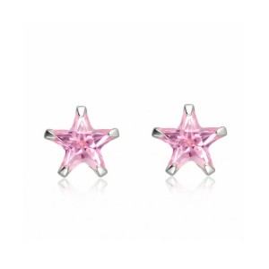 Kolczyki srebrne Ag925 z różowymi cyrkoniami w kształcie gwiazdek