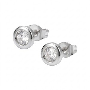 Kolczyki ze stali szlachetnej PASTYLKI Z CYRKONIĄ - srebrne