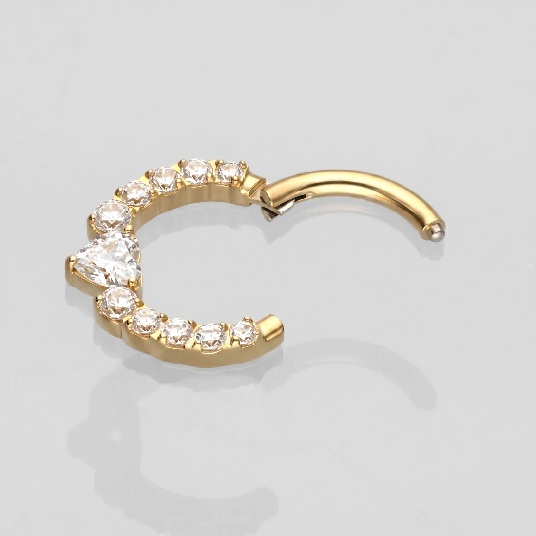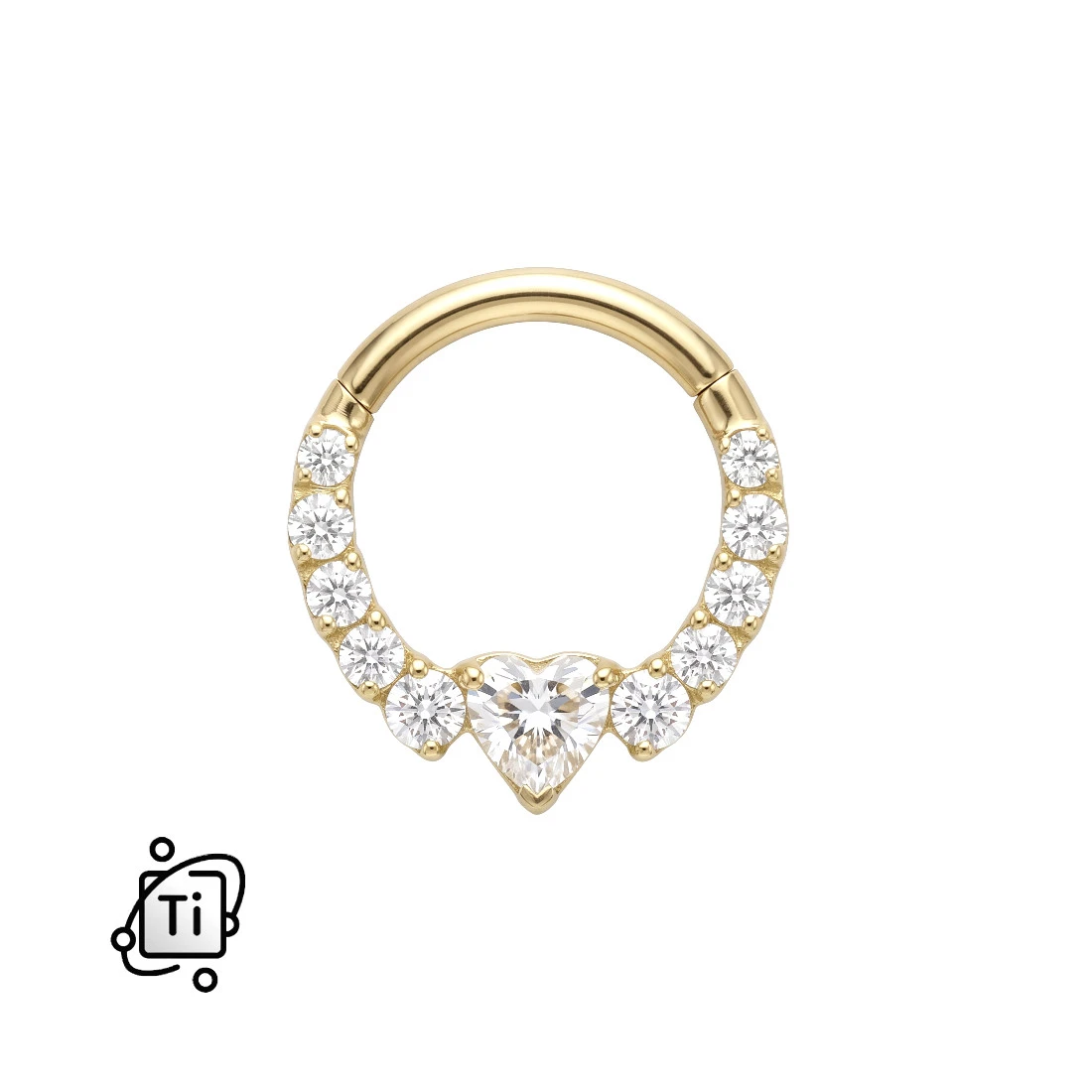 Kółko tytanowe clicker z serduszkiem i cyrkoniami - złote