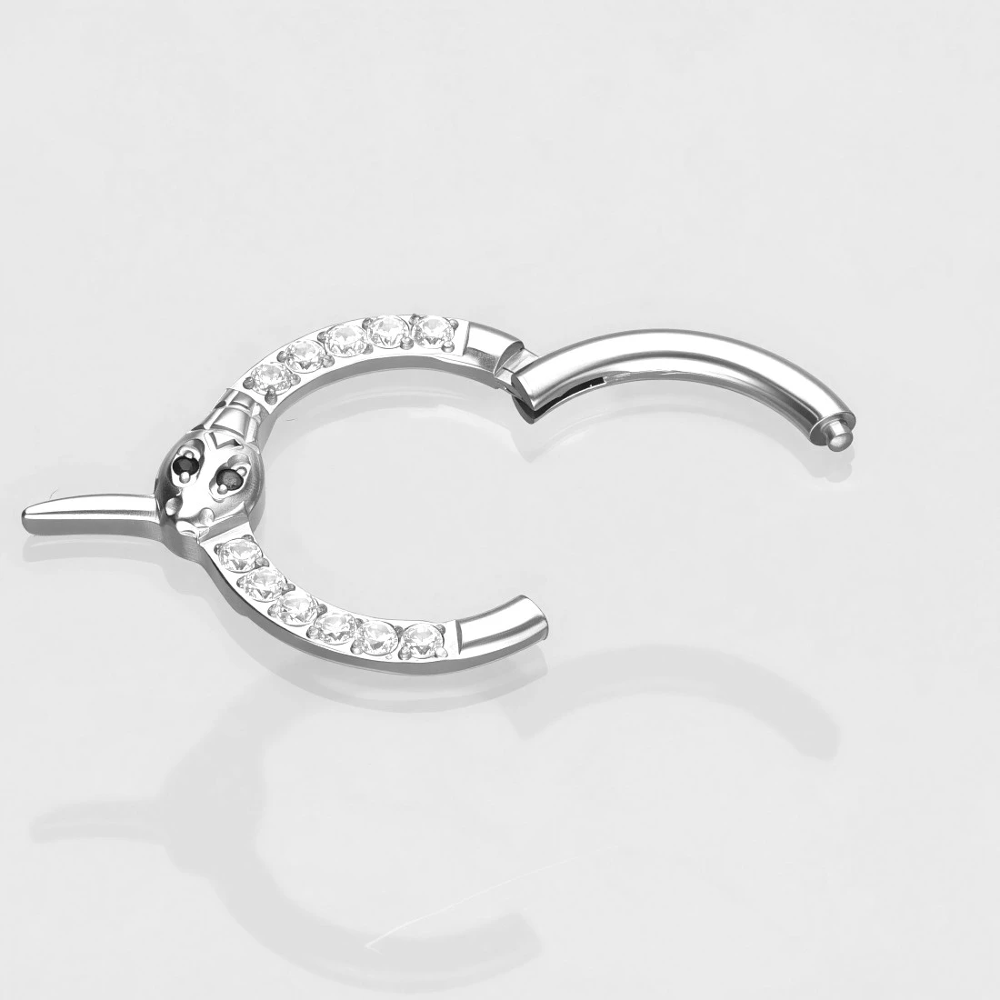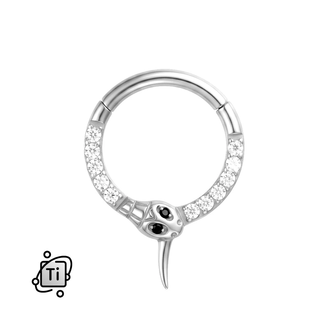 Kółko tytanowe clickerz cyrkoniami i motywem węża - srebrne