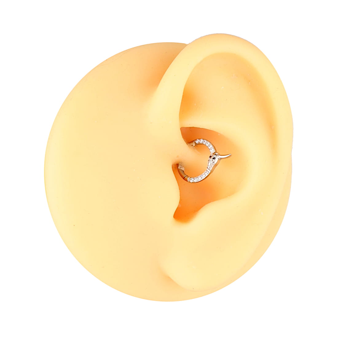 Kolczyk łączy w sobie motywy zwierzęce z nowoczesną elegancją, idealnie pasując do stylizacji o bardziej odważnym, lekko "ostrym" lub alternatywnym charakterze. Będzie dobrym wyborem dla osób, które cenią wyrazistą, oryginalną biżuterię. Ze względu na swoją formę i zdobienia, sprawdzi się w wielu rodzajach piercingu, takich jak septum, daith, helix czy conch. Może być również noszony jako efektowny kolczyk w płatku ucha.