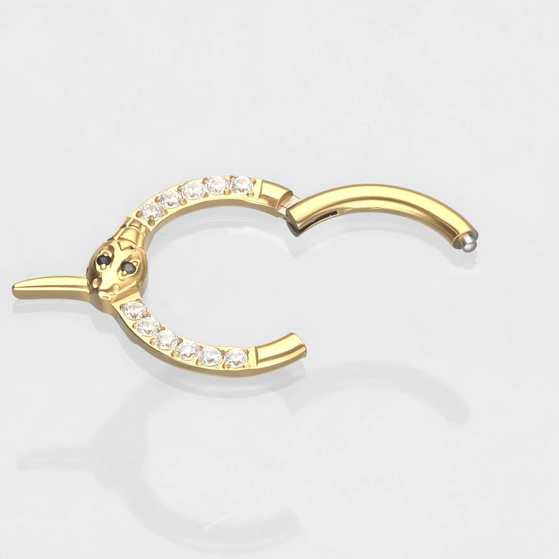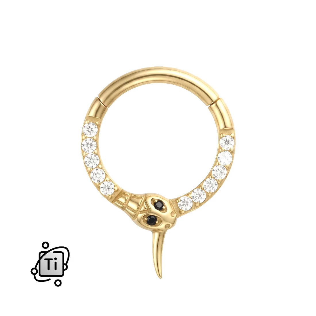 Kółko tytanowe clickerz cyrkoniami i motywem węża - złote