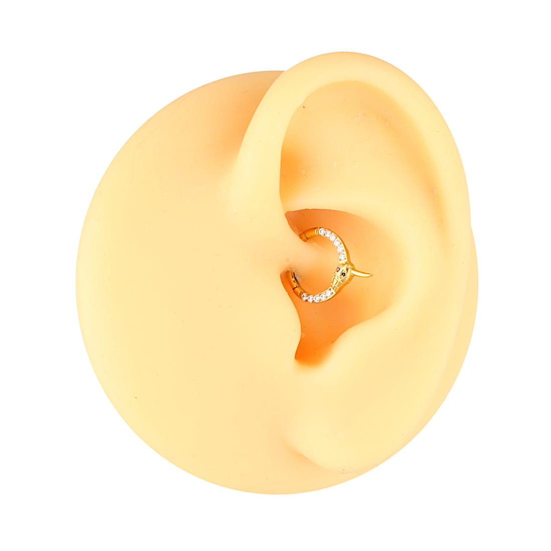 Kolczyk łączy w sobie motywy zwierzęce z nowoczesną elegancją, idealnie pasując do stylizacji o bardziej odważnym, lekko "ostrym" lub alternatywnym charakterze. Będzie dobrym wyborem dla osób, które cenią wyrazistą, oryginalną biżuterię. Ze względu na swoją formę i zdobienia, sprawdzi się w wielu rodzajach piercingu, takich jak septum, daith, helix czy conch. Może być również noszony jako efektowny kolczyk w płatku ucha.