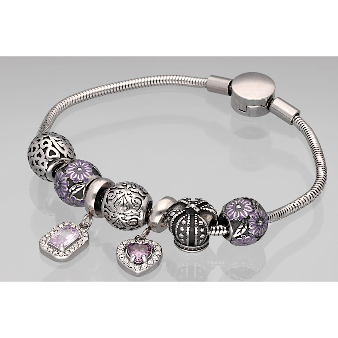 Klasyczny koralik modułowy typu charms, wykonany z oksydowanej stali szlachetnej, co gwarantuje trwałość, odporność na zarysowania, korozję oraz właściwości hipoalergiczne. W przeciwieństwie do srebra, stal szlachetna nie ciemnieje i nie wymaga specjalnej pielęgnacji, zachowując na długo swój nieskazitelny wygląd.