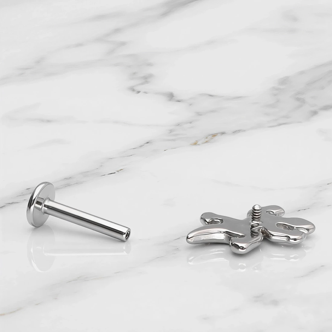 Labret wykonany z wysokiej jakości tytanu chirurgicznego, który jest materiałem cenionym w branży biżuteryjnej za swoją wyjątkową lekkość oraz trwałość. Tytan charakteryzuje się pełną biokompatybilnością, co czyni go bezpiecznym wyborem dla osób o wrażliwej skórze oraz alergików, gdyż nie wywołuje reakcji uczuleniowych.