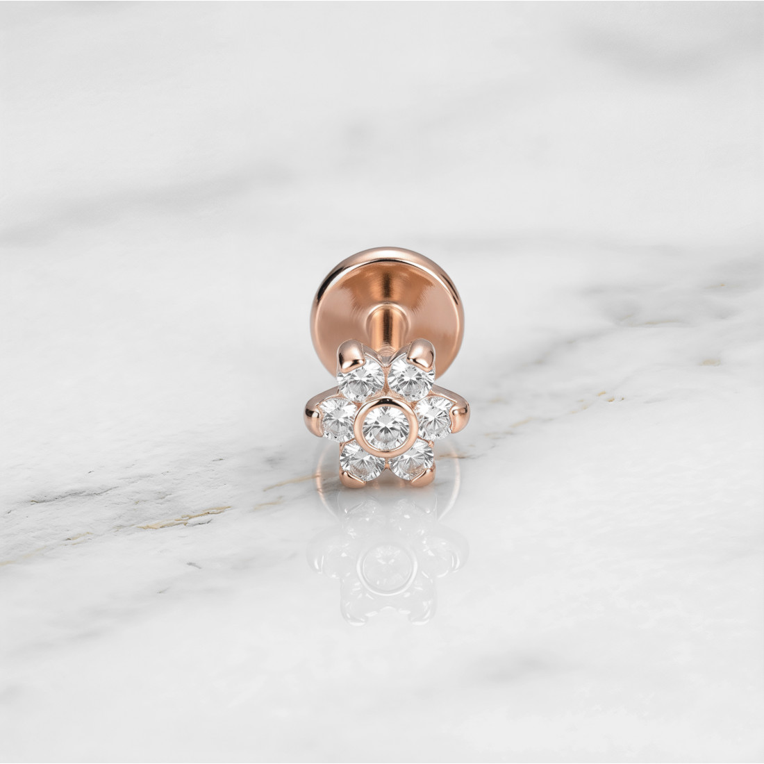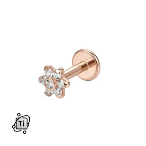 Labret tytanowy KWIATUSZEK z cyrkonii Crystal - różowe złoto