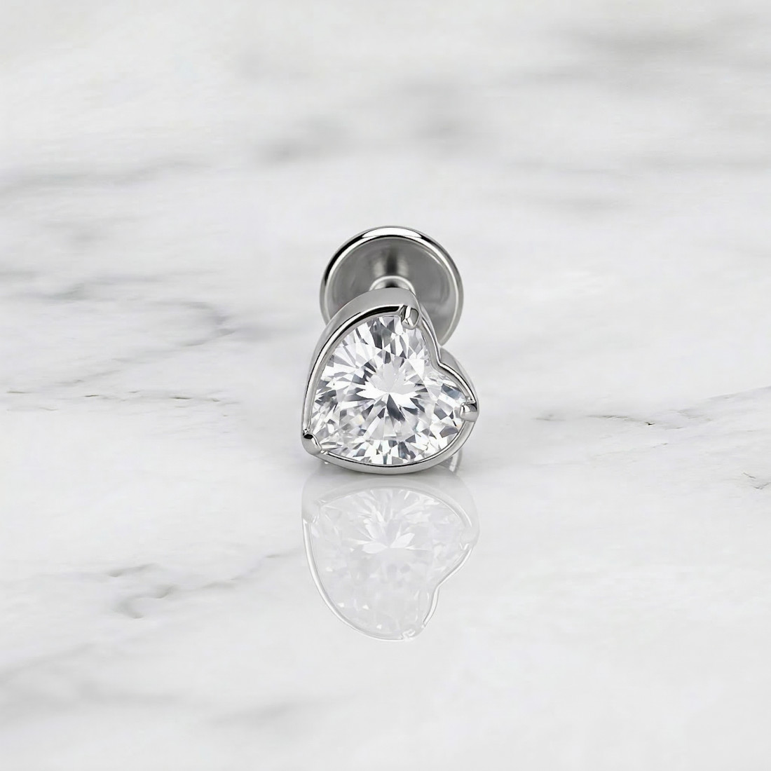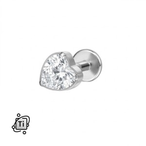Labret tytanowy SERCE z białą cyrkonią - srebrny