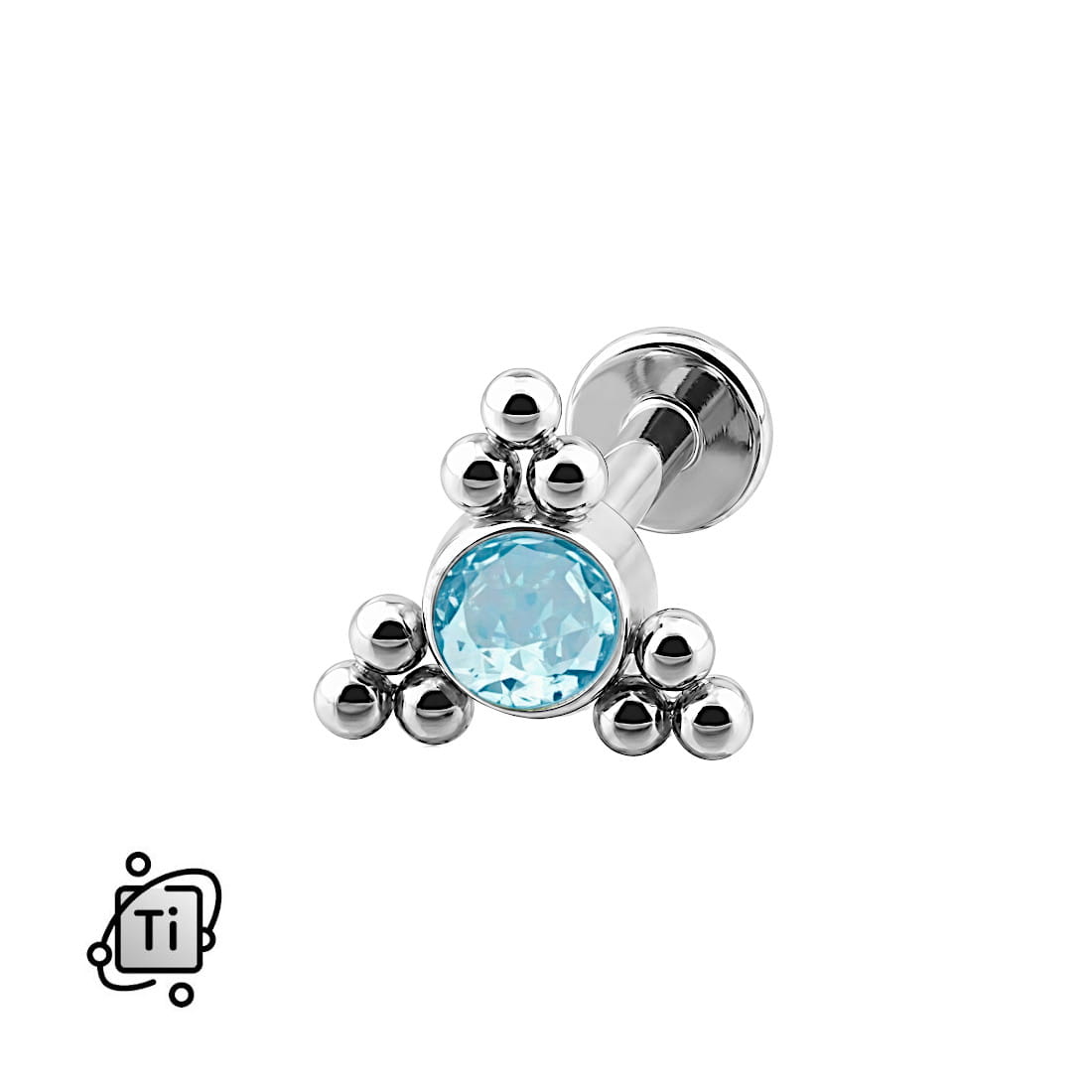Labret tytanowy z błękitną cyrkonią - srebrny